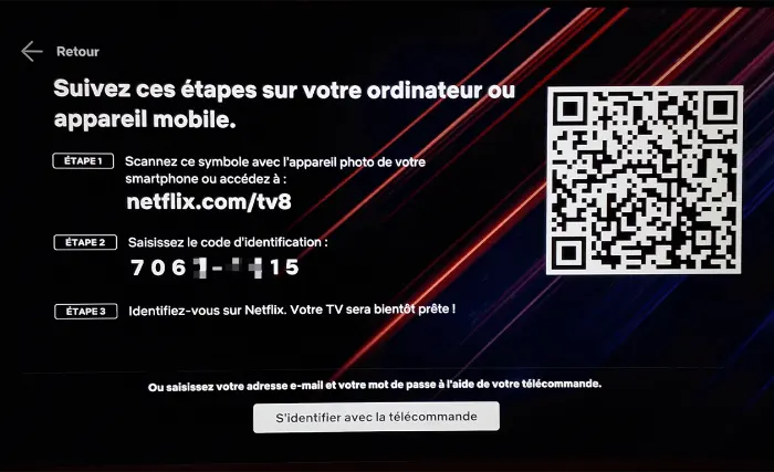 ترجع لل-PC متاعك وين حليت الصفحة متاع قبيلا و تكتب الكود إلي موجود في التلفزة وتنزل Continuer
